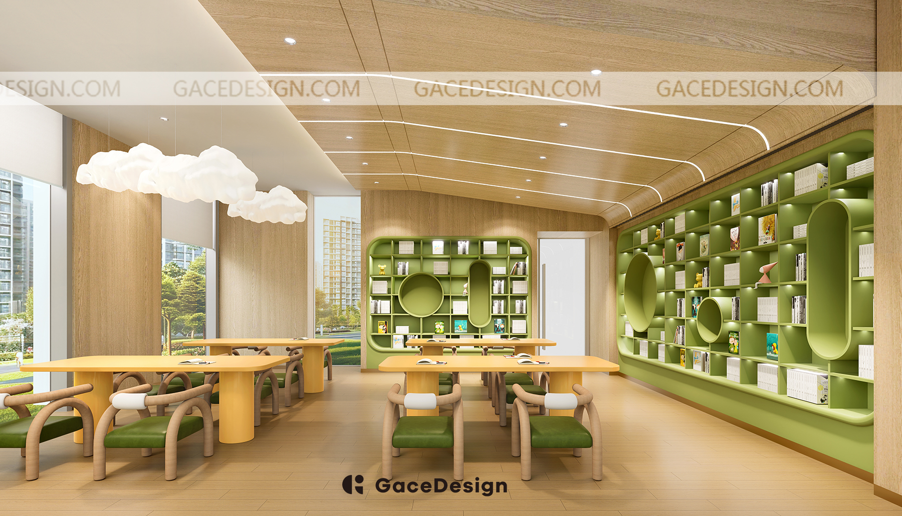 ?靜態(tài)區(qū)域被設(shè)計(jì)成了一個(gè)小的圖書館(四點(diǎn)半課堂),這里是孩子們可以安靜學(xué)習(xí)和閱讀的地方。此外,還有樂高區(qū)和標(biāo)本展示區(qū),有幫助孩子們通過互動(dòng)與觀察激發(fā)創(chuàng)造力和好奇心。