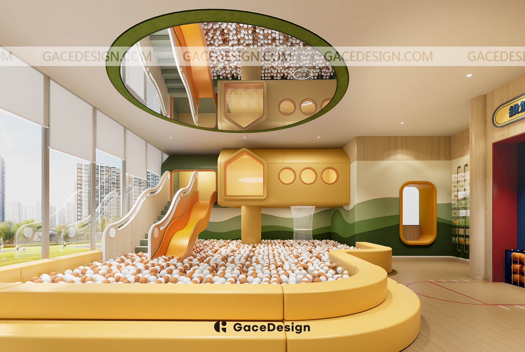 ?動(dòng)態(tài)區(qū)域則充滿了各種充滿樂趣的設(shè)施,特別是為低齡兒童設(shè)計(jì)了幼童區(qū)。我們還設(shè)置了滑梯、球池和沙池區(qū),孩子們可以在不同的區(qū)域里進(jìn)行角色互動(dòng),釋放他們的精力。對(duì)于稍大一點(diǎn)的孩子,還有攀爬墻和籃球供他們挑戰(zhàn)身體協(xié)調(diào)性和體能