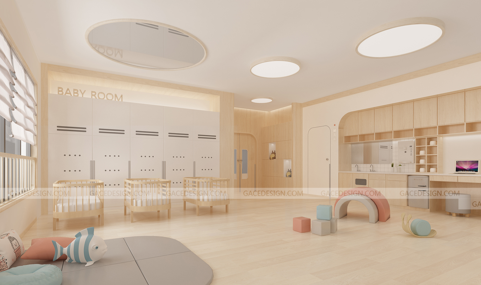 設(shè)計(jì)概括:這是我們幫啟思頓托育園設(shè)計(jì)的旗艦店,面積達(dá)到1000平以上,作為中山市高標(biāo)準(zhǔn)的示范性托育園,我們?cè)谠O(shè)計(jì)之前組織設(shè)計(jì)師進(jìn)行跟崗觀察,學(xué)習(xí)守護(hù)型嬰幼兒保育等系列保育書。考慮到保育員在操作層面上的便捷性,我們進(jìn)行了場(chǎng)景模擬,把操作層面所涉及的柜體以及路徑進(jìn)行了系統(tǒng)性整理??紤]到嬰幼兒在保育園的心理狀態(tài)以及發(fā)展心理學(xué)和空間敏感,我們定位這個(gè)項(xiàng)目是孩子的第二個(gè)家。是一家值得爸爸媽媽愿意托付的托育園。