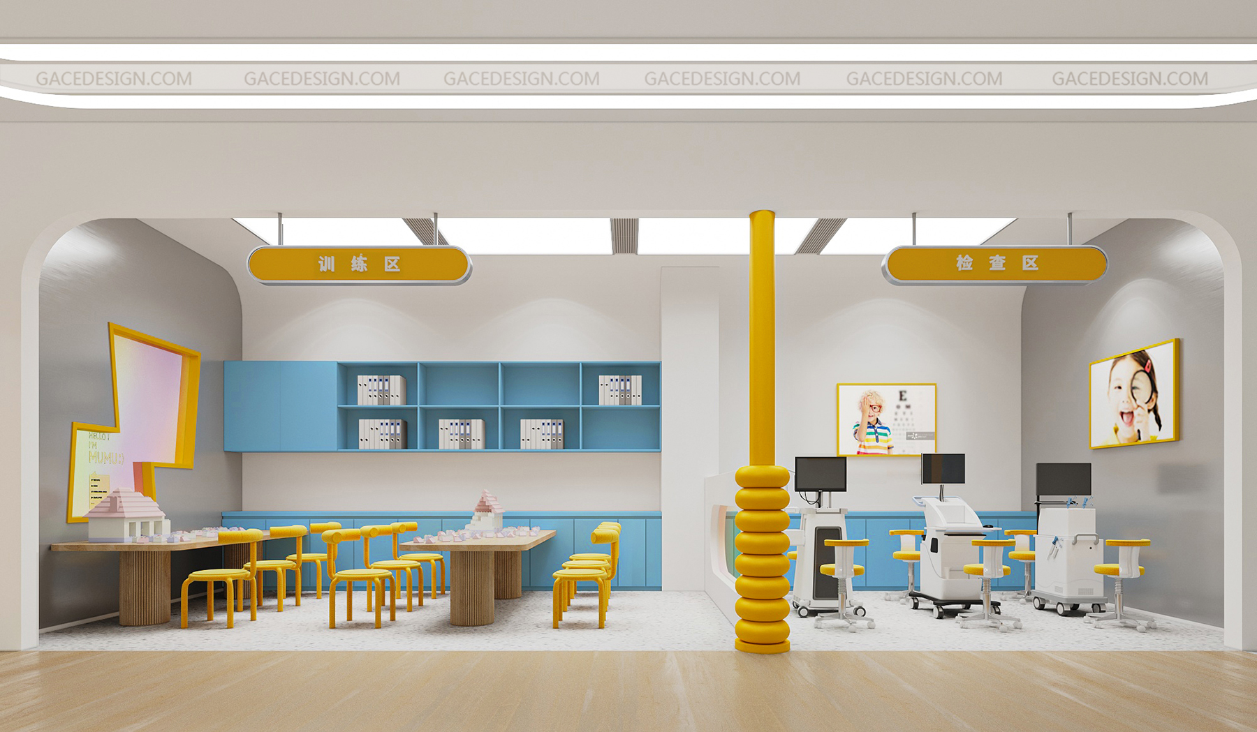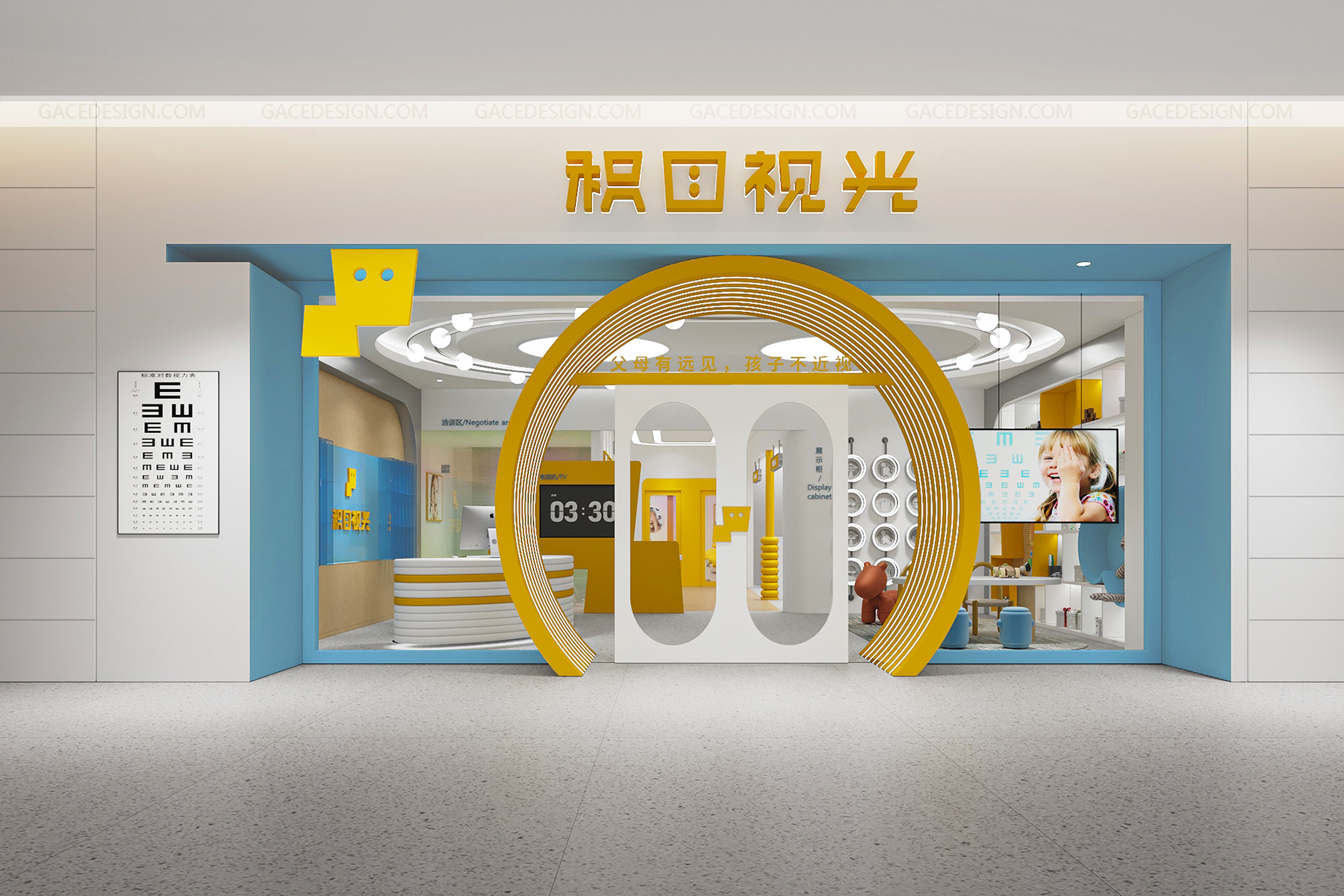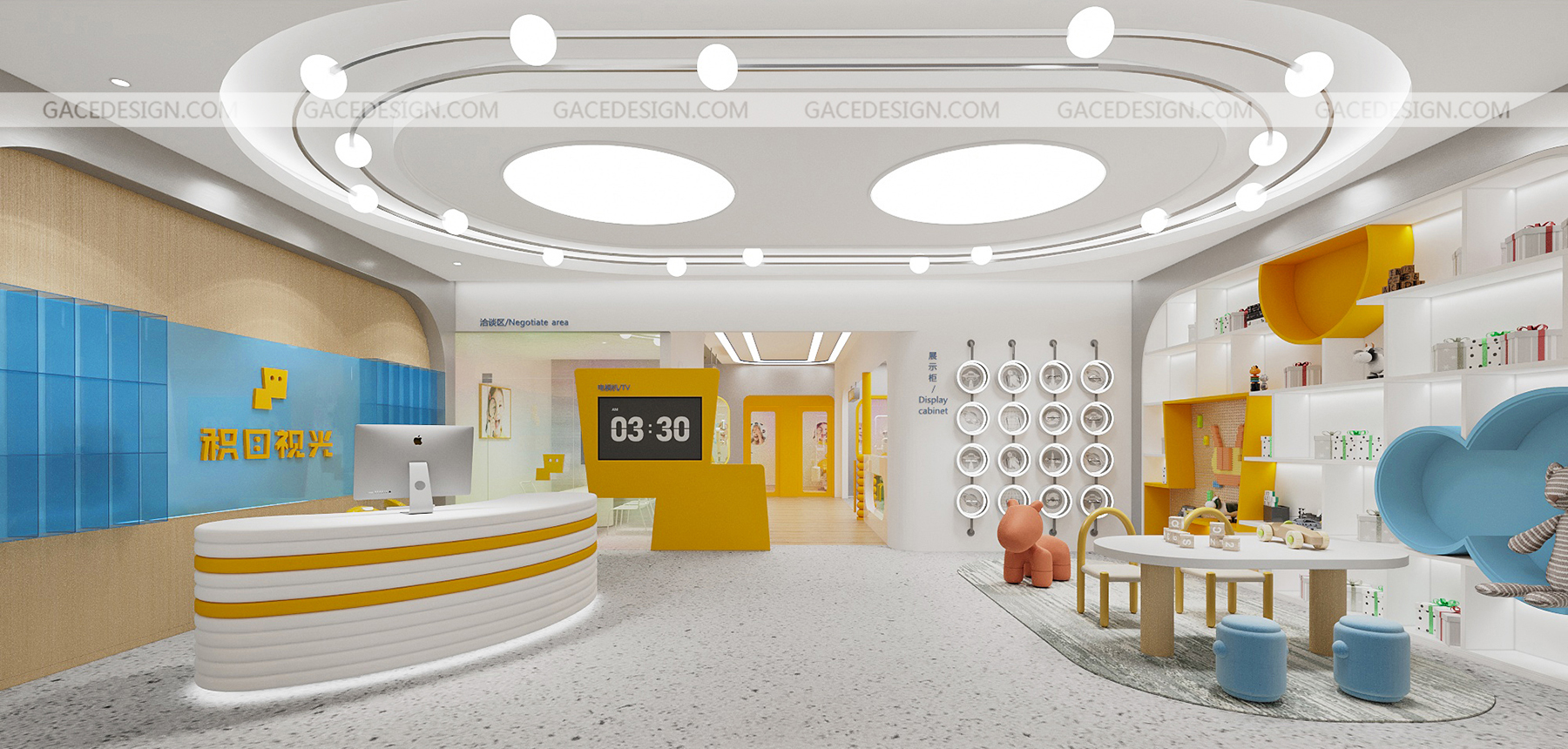 設(shè)計(jì)說明:將品牌IP最大化融入到空間。以鮮明的品牌形象色,傳達(dá)了引領(lǐng)行業(yè)趨勢的新理念。友好的圖形具象化,強(qiáng)烈的對比色在市場打出差異化。讓整個(gè)場景與兒童體驗(yàn)起來更生動(dòng)有趣。,所有的尺寸根據(jù)兒童的人體工學(xué)進(jìn)行搭配。每一個(gè)小細(xì)節(jié)都對兒童友好。一切都是圓的,沒有可以撞到的角落。