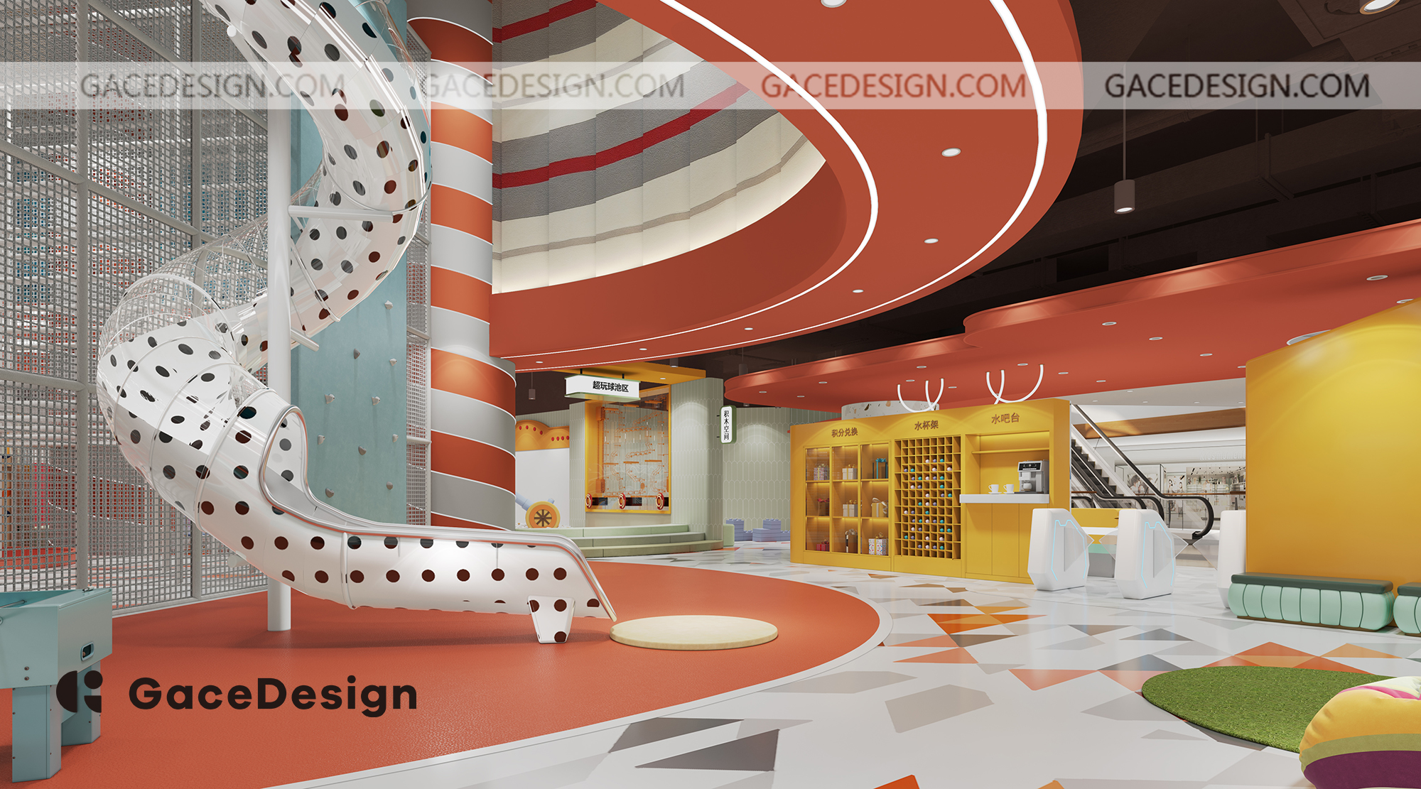 設(shè)計闡述:設(shè)計中的設(shè)施通過精心的設(shè)計可以靈活的滿足二至八歲孩子的學(xué)習(xí)及探索,空間的設(shè)計可以滿足各個學(xué)習(xí)階段的兒童安全的在空間進行探索。旨在讓兒童在無懼無所的空間里玩樂,并將“玩樂”的純粹歸還給兒童。讓兒童在空間中更好的享受滑梯、攀爬、躲藏、并在互動和游戲中成長。同時,陪同的家長也可以在這里放松心情,享受陪伴孩子的美好時光。