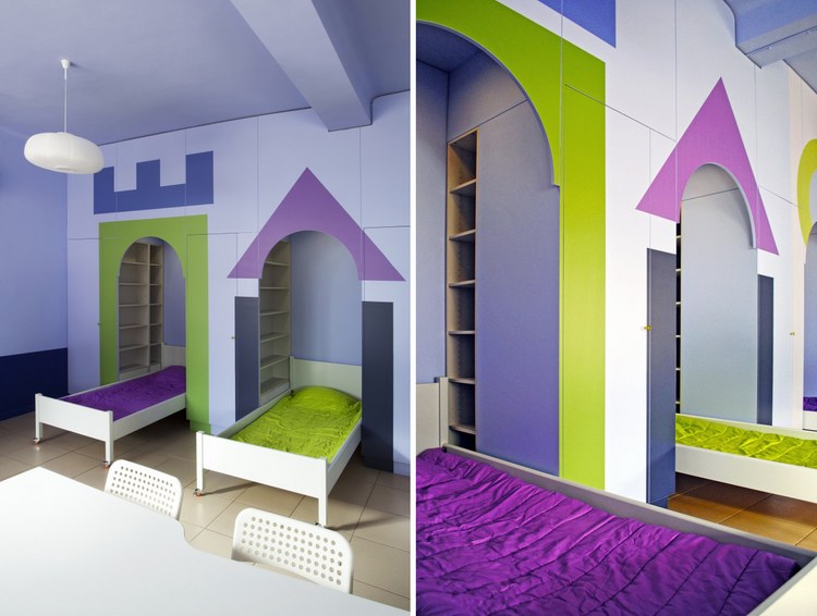 “燦爛的微笑”項(xiàng)目的目標(biāo)是要在經(jīng)濟(jì)可行的前提內(nèi)創(chuàng)造一個(gè)宜人、溫暖、安全的環(huán)境。關(guān)鍵因素是要為每個(gè)孩子創(chuàng)造私人空間。這里有18個(gè)不同年齡段和面臨不同困難的孩子,因此需要滿足他們不同的需求。