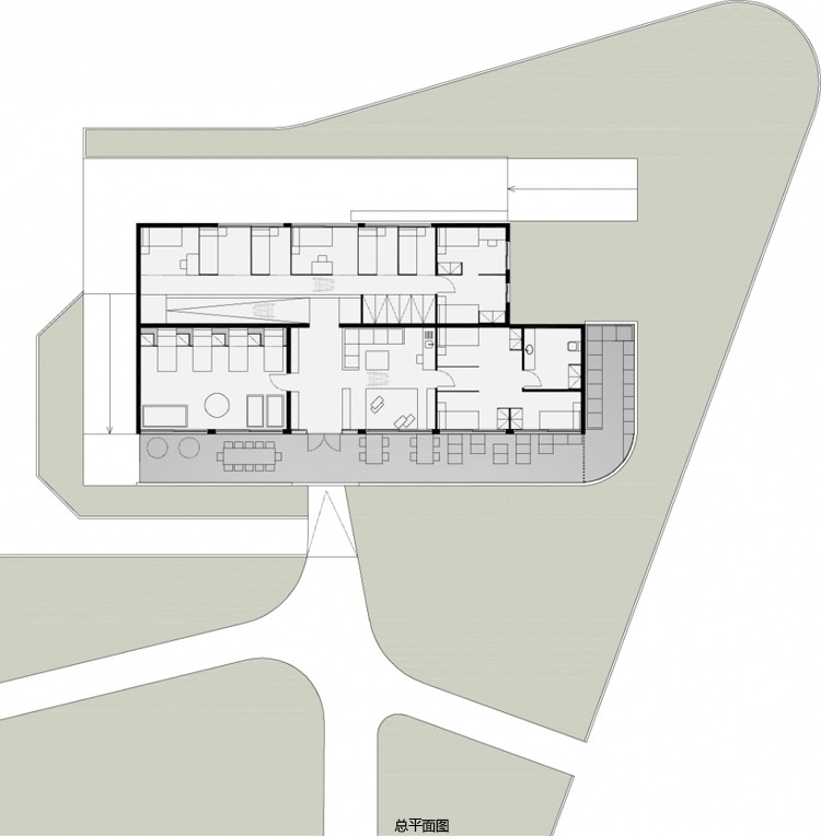 公共區(qū)域是聚集和玩耍空間,全面重組不同的功能空間,連接不同樓層的坡道成為一個(gè)統(tǒng)一元素,象征著天空、大地和海床。