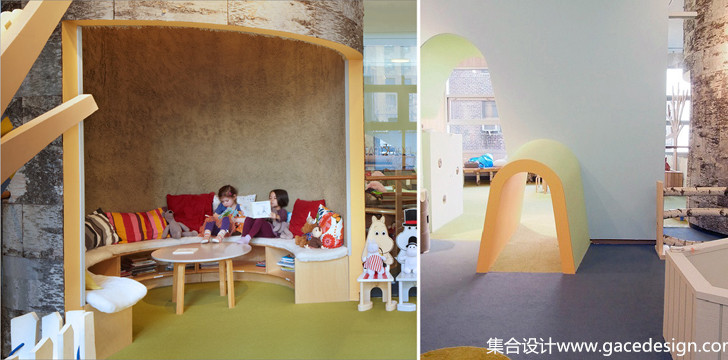 在教育中心的空間中,兒童可以發(fā)展出自己的感官知覺、形狀、顏色和紋理的變化,在每一個(gè)空間。有角地區(qū)的游戲,如樂高的房子,客廳與蘑菇或玩具火車。也有可能是空間中,休息或看書。以活動(dòng)似乎并沒有在一個(gè)地方,那么這樣的充滿幻想和樂趣。