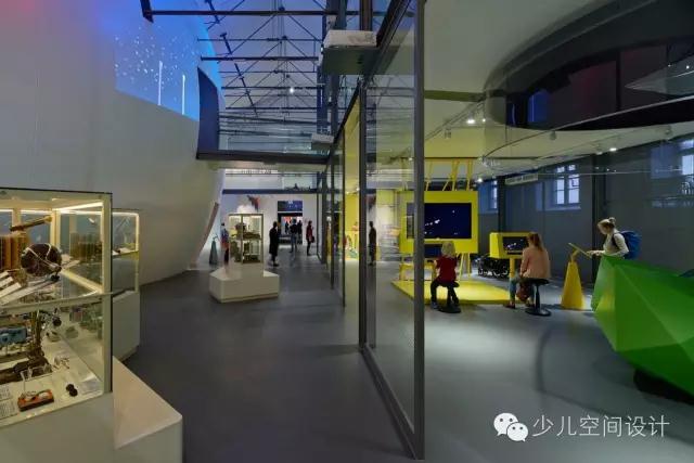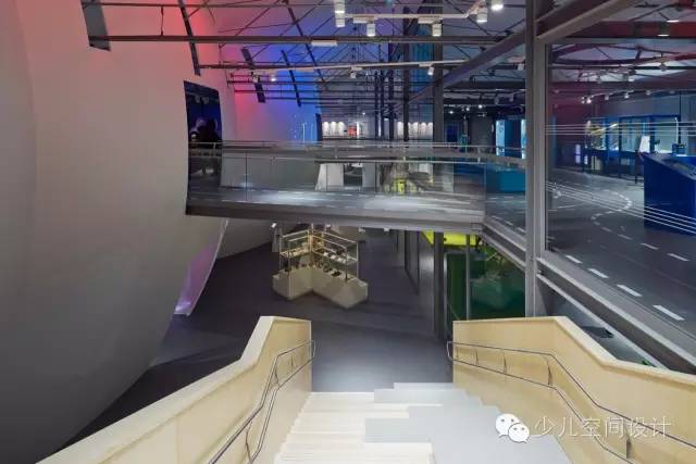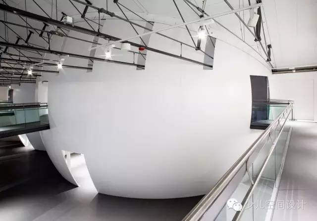 在大廳里,兩個宏大體量較天花板又上升了10米,一個體量繃緊而堅(jiān)硬,另一個體量柔軟而具有波動性。它們由橋梁相連,人們通過橋梁來回走動。游客會產(chǎn)生“哇”的驚嘆感,并被引入充滿誘惑和想象力的迷人世界,它激發(fā)人們的欲望和好奇心來參與學(xué)習(xí)、探索和創(chuàng)造的過程。