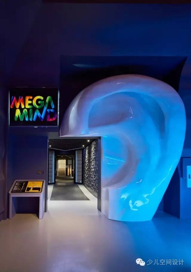 我們對最強(qiáng)大腦建筑風(fēng)格的愿景是基于一種對人類大腦的詮釋。游客從入口通過耳狀空間進(jìn)入格狀中間區(qū),它是發(fā)送和接收通信數(shù)字脈沖流和信息的樞紐。