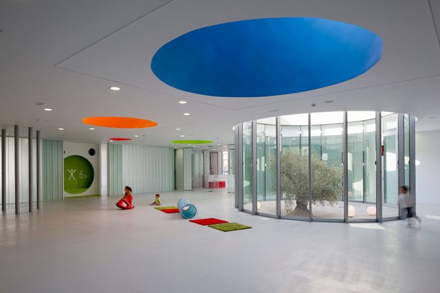 幼兒園室內(nèi)設(shè)計(jì)要考慮不同的空間感和尺度,創(chuàng)造一個(gè)能容納多種感知的空間,教師和孩子們都能發(fā)展自身的認(rèn)知能力,所以幼兒園設(shè)計(jì)面臨的就是成人和孩子的角度的雙重尺度的設(shè)計(jì)。。Vereda de Estudiantes 幼兒園的設(shè)計(jì)通過(guò)將完整的建筑分散成幾座不同的小建筑以解決這個(gè)問題。