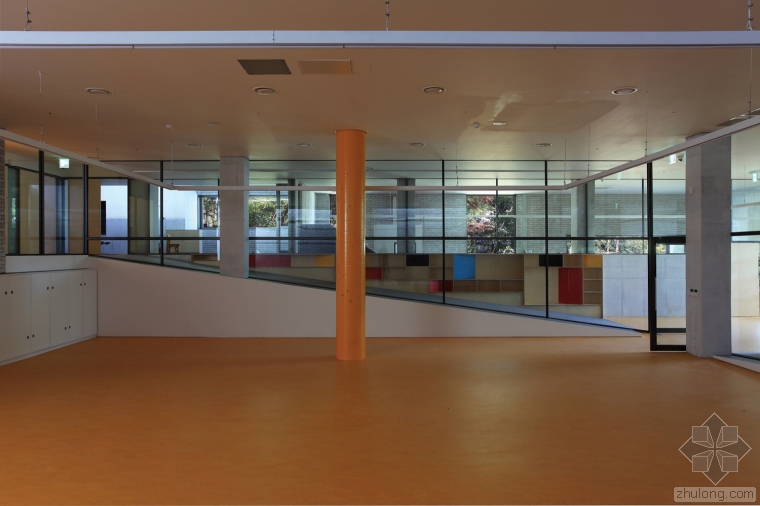 幼兒園有一個規(guī)格為23米*48.5米的矩形混凝土地下室,根據(jù)各個室內(nèi)兒童的實際需求,房間的高度也是設(shè)計的歌不相同,在地下室里會有一些學習活動,與其他教學區(qū)域密切相關(guān)。18個教室以及其他的功能性區(qū)域?qū)⒈环稚⒃?個建筑里,它們的尺寸各不相同,朝著一定的方向高度逐漸升高,這主要是與周邊的逐漸升高的地勢相互照應(yīng)。如今,這些教學設(shè)施已經(jīng)成為了該地區(qū)的標志性景觀,18個教室和一個門廳的設(shè)計吸引了眾多家長前來參觀。