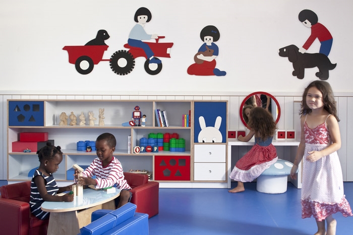 拉馬特甘幼兒園位于以色列占地為一百平方米,在幼兒園周圍是廣闊中滿青菜的菜地,幼兒園設(shè)計(jì)有兩個(gè)教室,分為一歲半和兩歲半的小班和兩歲半到三歲半的大班,幼兒園的設(shè)計(jì)非常的簡(jiǎn)潔,精心去選擇顏色和木質(zhì)的家具成功搭配結(jié)合在一起,還有很多柔軟的手工設(shè)計(jì)添加在其中,可以激勵(lì)孩子們揮發(fā)自己的想象力,種種有針對(duì)性的舉措是的幼兒園形成親密獨(dú)特的氛圍。