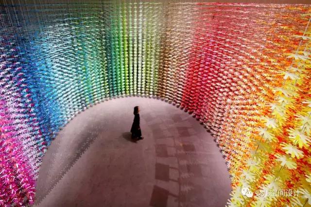 設(shè)計(jì)師采用了螺旋的形式,將空間變成了一個具有花卉圖案的,充滿了活力的,閃閃發(fā)光的五彩世界。游客可以站在其中,周圍的五顏六色包圍著他們。他使用了25,200個花卉圖案用3維網(wǎng)格形式排列,精工株式會社讓他們的客人真正的沉浸在了這個展覽中。