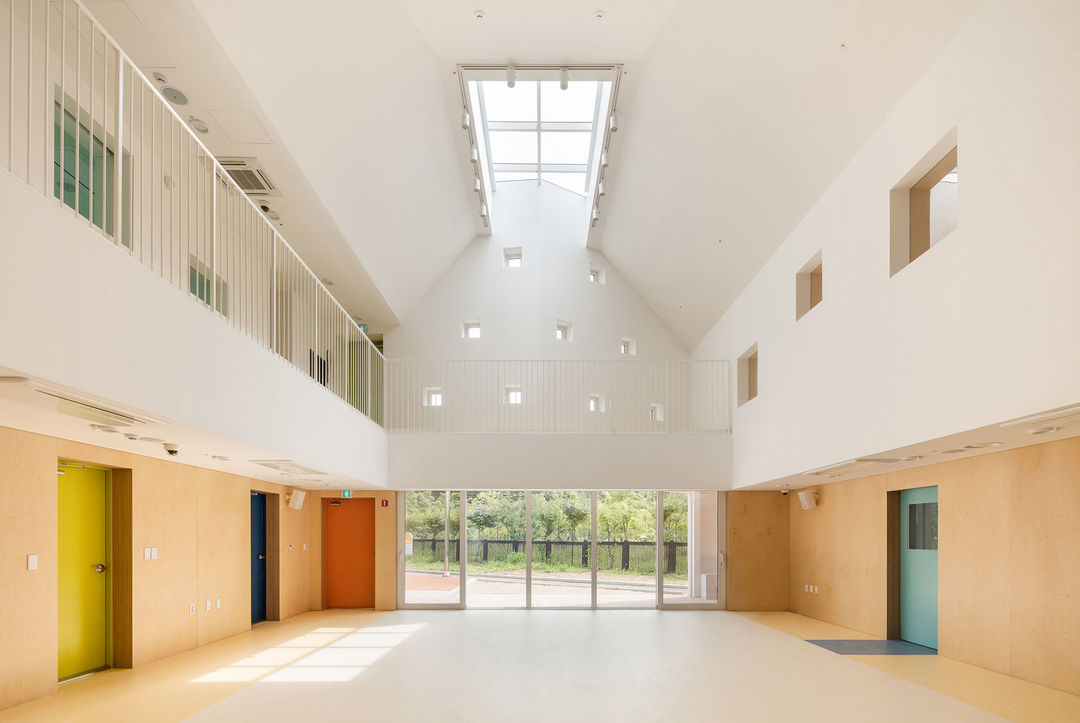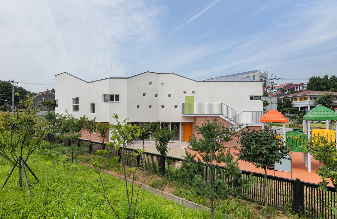 這是一家在韓國首爾的幼兒園,外觀上最明顯的標(biāo)志是不規(guī)則的屋頂,雖然還是用的青瓦,它的起伏和轉(zhuǎn)折并不連貫,倒像是將不同幢房子拼在一起了。每一個房間都只有一種顏色,但光線和轉(zhuǎn)折的墻面讓每個房間都非常獨(dú)特,越來越多的幼兒園融入了設(shè)計(jì)者對于早期教育的想法。有的放任玩耍,寓教于樂,也有通過建筑設(shè)計(jì)來影響兒童的世界觀。