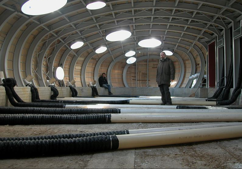 在另一邊,我們能看到有著其他特殊用途的房間:宿舍,美術(shù)室及活動(dòng)室。這是一個(gè)富有參與性的空間。在建筑內(nèi)部,你會(huì)感覺(jué)置身于一個(gè)地板結(jié)冰的洞穴里。而建筑外部的設(shè)計(jì)看起來(lái)就像是一個(gè)降落在花園里的宇宙飛船。光線從18個(gè)舷窗透進(jìn)來(lái),這些舷窗分別安裝在墻壁和拱頂?shù)牟煌恢茫夜饩€的位置總是隨著時(shí)間和季節(jié)的變化而變化。