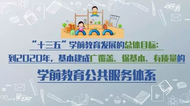 《意見(jiàn)》對(duì)“十三五”學(xué)前教育改革發(fā)展做出了全面部署,提出了“十三五”學(xué)前教育發(fā)展的總體目標(biāo):到2020年,基本建成廣覆蓋、保基本、有質(zhì)量的學(xué)前教育公共服務(wù)體系。