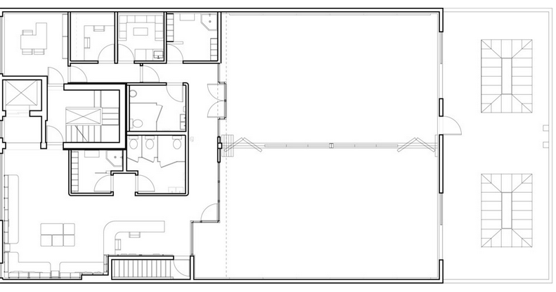 舞蹈教室設(shè)有彈簧地板和明亮的天窗,為舞者創(chuàng)造了絕佳的環(huán)境。兩間教室之間采用可變隔墻,在演出時(shí)可以將隔斷完全打開(kāi),形成一個(gè)帶遮光簾的巨大舞臺(tái)。