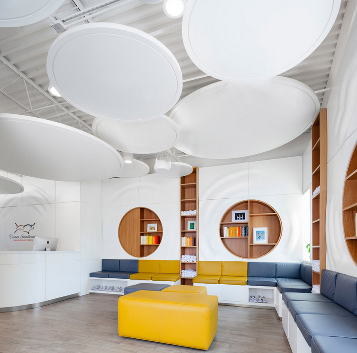 ▼明亮通透的舞蹈教室兩間舞蹈教室打通形式一個(gè)巨大舞臺(tái)嵌入式儲(chǔ)物柜,鮮艷的顏色給人以充滿活力的感覺(jué)