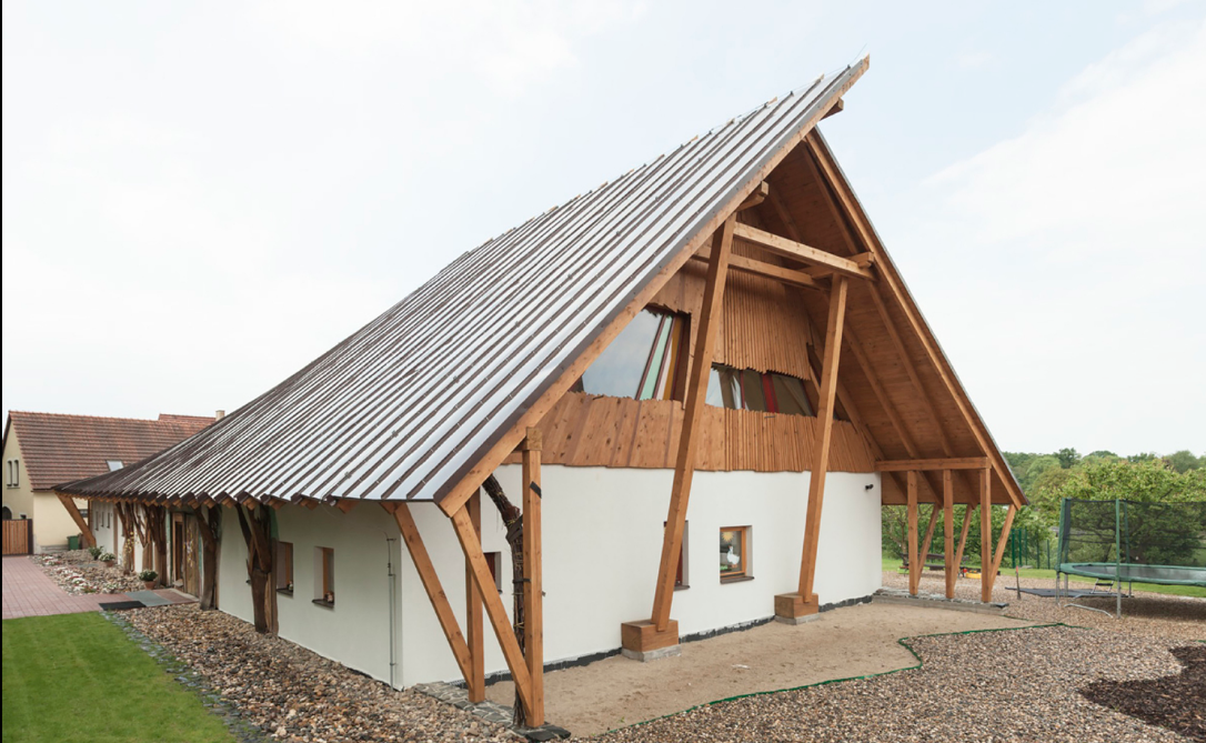 垂直墻壁上打開的門窗被設(shè)計(jì)用作抵御洪水,或者能夠更輕松的進(jìn)行素材的更換。屋頂是銅色鋁板。