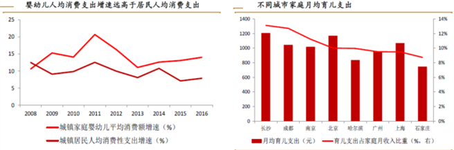 從產(chǎn)業(yè)生命周期角度看,兒童產(chǎn)業(yè)更傾向于常青產(chǎn)業(yè),相當(dāng)于其他產(chǎn)業(yè)(成長期-成熟期-衰退期)生命周期而言,常青產(chǎn)業(yè)的產(chǎn)業(yè)生命周期波動(dòng)較小,支撐其長期處于成長與成熟期的是家庭收入增加后,引致型消費(fèi)更愿意投在子女養(yǎng)育消費(fèi)上,兒童在服裝、食品、藥品、保健品等方面的消費(fèi)屬于剛性需求,為市場提供了持久動(dòng)力。這一特征決定了兒童產(chǎn)業(yè)不是速生速滅的“快閃”產(chǎn)業(yè),而是持續(xù)投資、長期回報(bào)的產(chǎn)業(yè)。