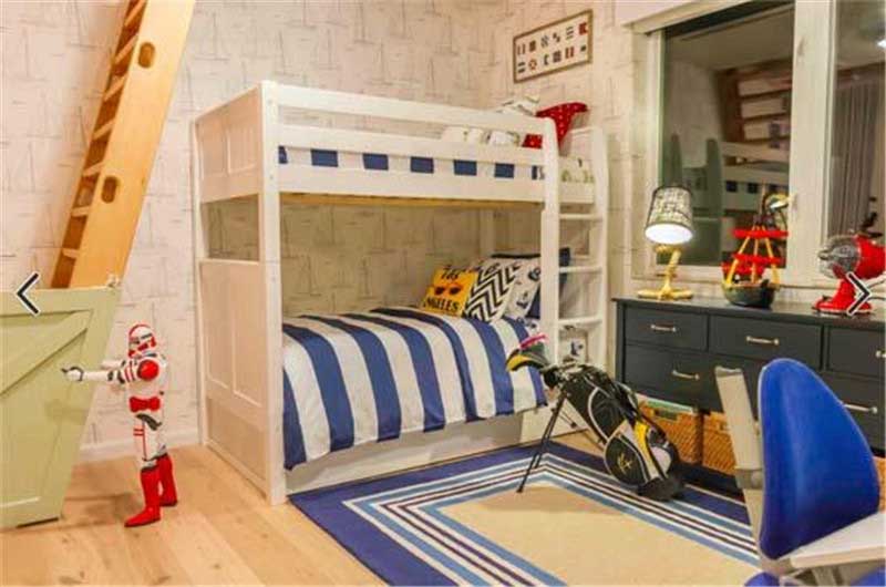 為了節(jié)省空間,大多麻麻會采用上下式。交錯式其實也是很不錯的選擇哦!空間感極強,等他們長成大寶,還可以睡前隨時聊聊天~