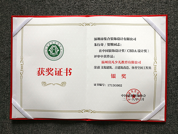 2018年,集合作品“溫州莫凡少兒教育有限公司”在中國裝飾設(shè)計獎中獲銀獎