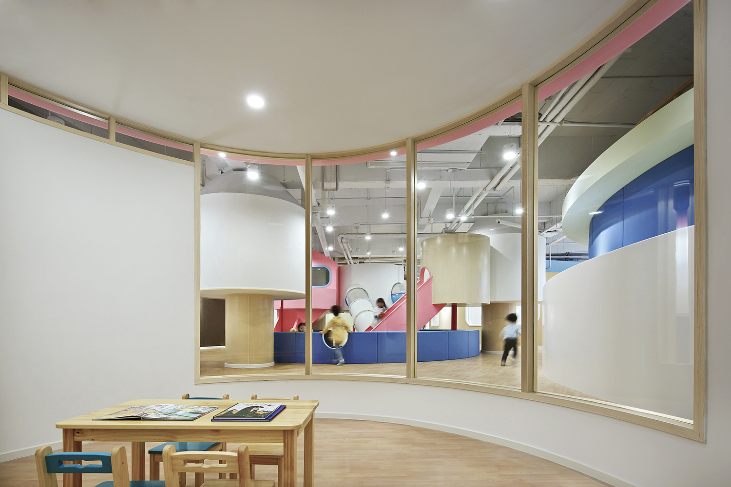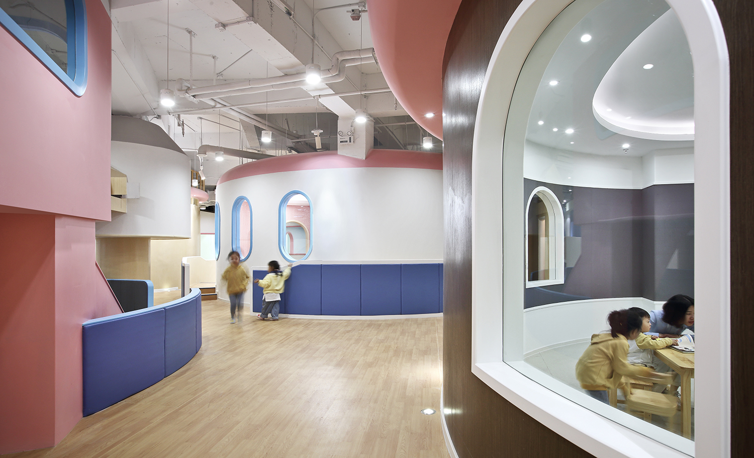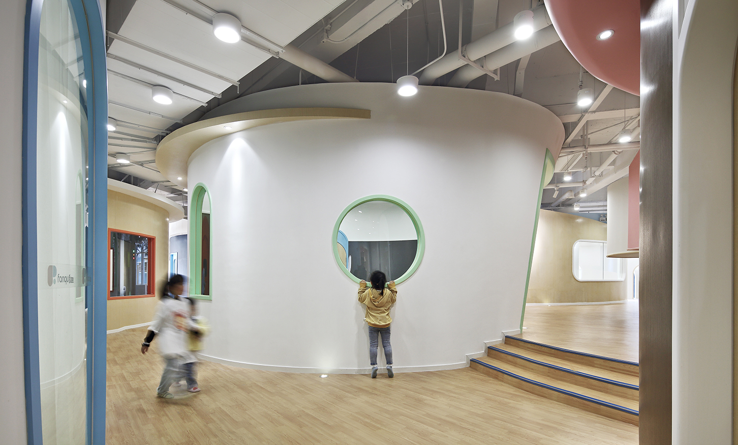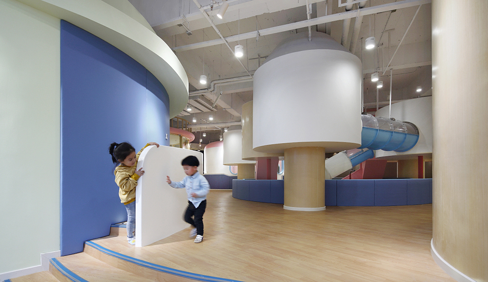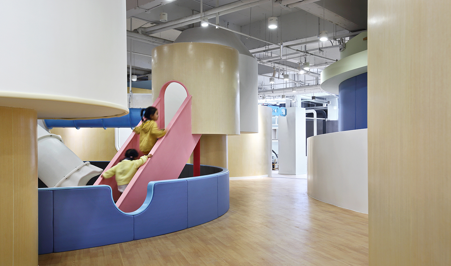 游戲是孩子的活力之源,也是孩子通往世界的途徑。設(shè)計(jì)師將游樂區(qū)布局在室內(nèi)的中心位置,讓孩子的歡聲笑語激活整座“城”。孩子們會(huì)帶著好奇和期待爬上梯子,穿過可愛的小木屋,在管道中匍匐前進(jìn),然后“咻”地一下滑入下沉的球池,在不斷變化動(dòng)作和愉悅的體驗(yàn)中獲得身心的鍛煉和能力的發(fā)展。